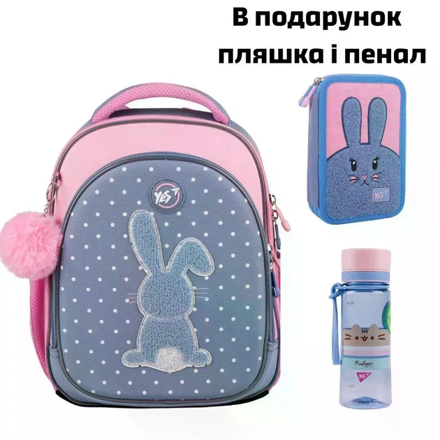 Рюкзак шкільний YES Lovely Bunny S-109 напівкаркасний сірий + пенал HP-01 + пляшка | Арт. 1883