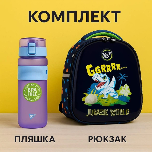 Рюкзак дитячий для садочка Jurassic World K-33 Yes Комплкт рюкзак+ пляшка для води Fusion 550 мл