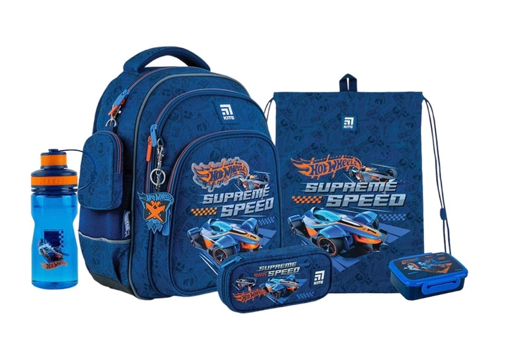 Шкільний набір Kite Hot Wheels (рюкзак+пенал+сумка+ланчбокс+пляшка) SETHW24-763S, 115-130 см