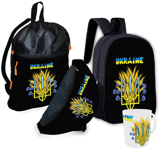 Набір Тризуб Україна Рюкзак дитячий шкільний 36х27см + Сумка для взуття спортивної форми рюкзак-мішок з розширювальним клапа