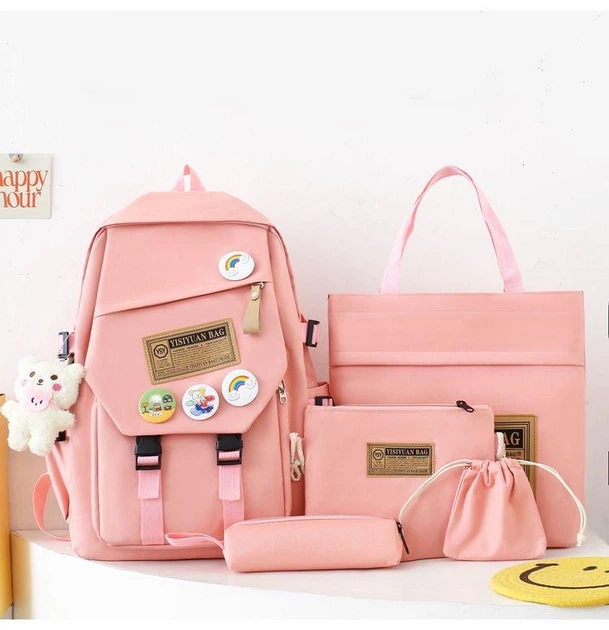 Шкільний набір 5 в 1 рюкзак, сумка-шопер, пенал, сумочка-клатч через плече, сумочка-мішечок рожевий 1313