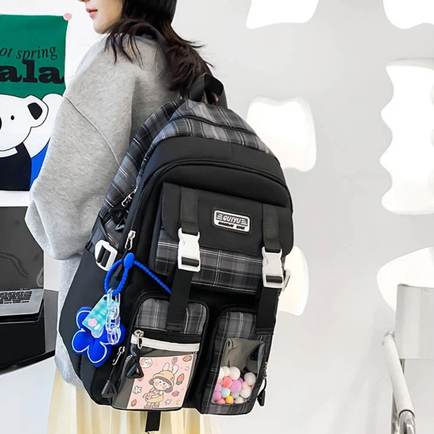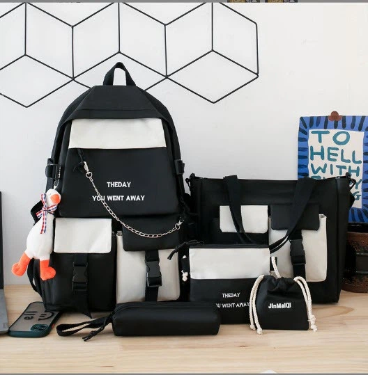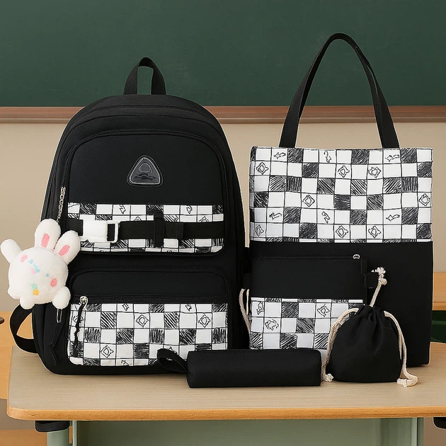 Шкільний набір 5 в 1 рюкзак, сумка-шопер, пенал, сумочка-клатч через плече, сумочка-мішок чорний з білим 1255-1