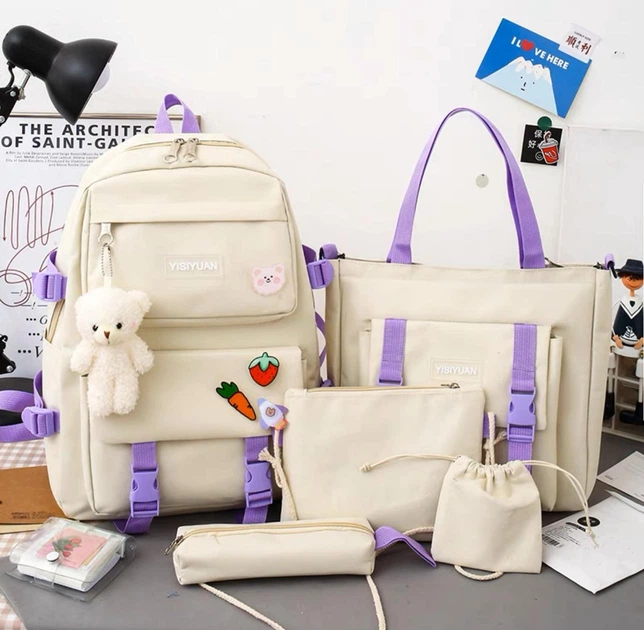 Шкільний набір 5 в 1 рюкзак, сумка-шопер, пенал, сумочка-клатч через плече, сумочка-мішок білий 1255
