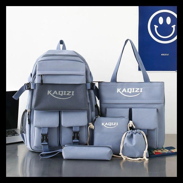 Шкільний набір 5 в 1 KAQIZI рюкзак, шопер, клатч, пенал, мішечок блакитний