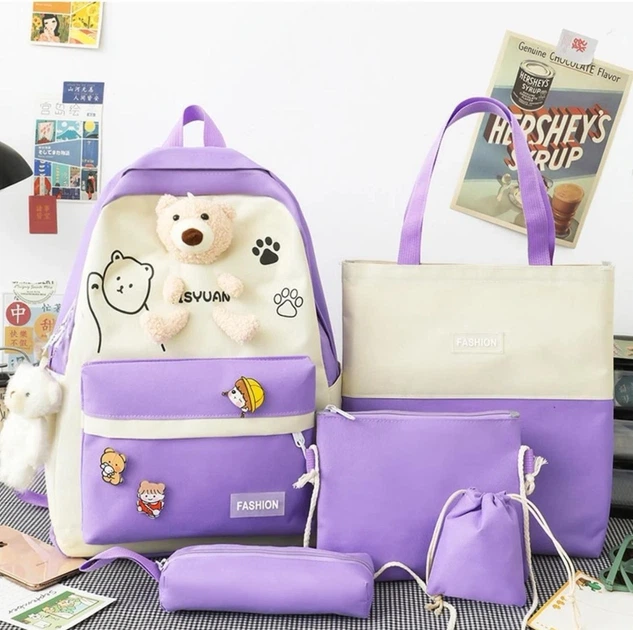 Шкільний набір 5 в 1 рюкзак, сумка-шопер, пенал, сумочка-клатч через плече, сумочка-мішок фіолетовий 1255