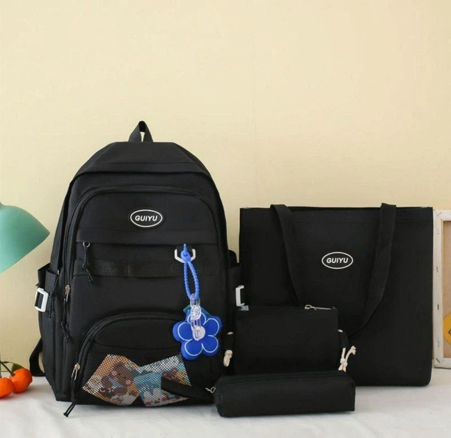 Шкільний набір 4 в 1 GUIYU рюкзак, шопер, пенал, сумочка-гаманець чорний