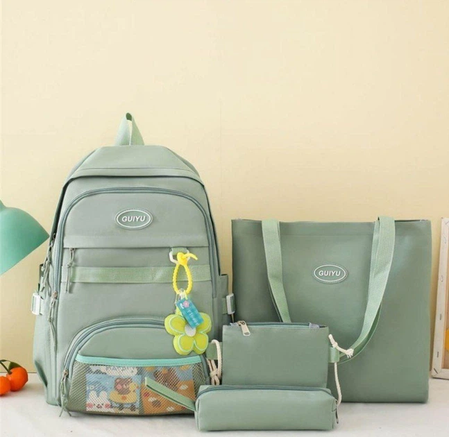Шкільний набір 4 в 1 GUIYU рюкзак, шопер, пенал, сумочка-гаманець зелений