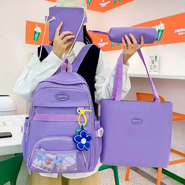 Шкільний набір 4 в 1 GUIYU рюкзак, шопер, пенал, сумочка-гаманець фіолетовий