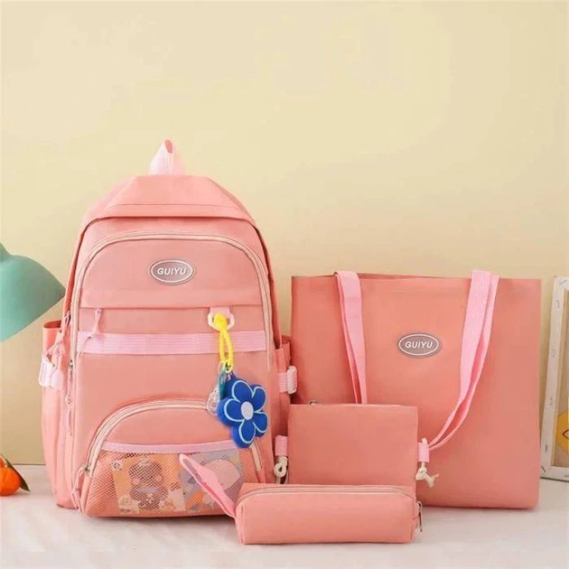 Шкільний набір 4 в 1 GUIYU рюкзак, шопер, пенал, сумочка-гаманець рожевий