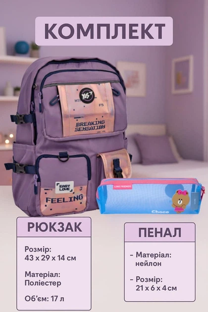 Рюкзак YES Feeling T-107 Комплект рюкзак + пенал (559977) Фіолетового кольору