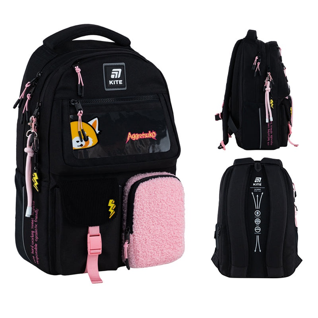 Рюкзак шкільний для підлітка Kite Education Teens Aggretsuko, для дівчаток, чорний (AR25-2575M)