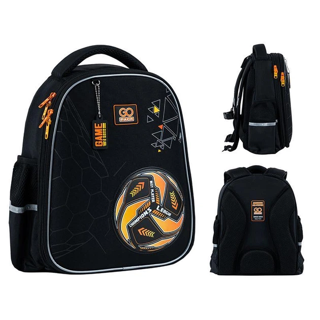 Рюкзак шкільний напівкаркасний ортопедичний для першокласника GoPack Education It's a Goal Time, для хлопчиків, чорний (GO25