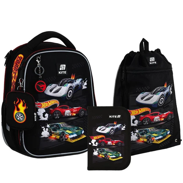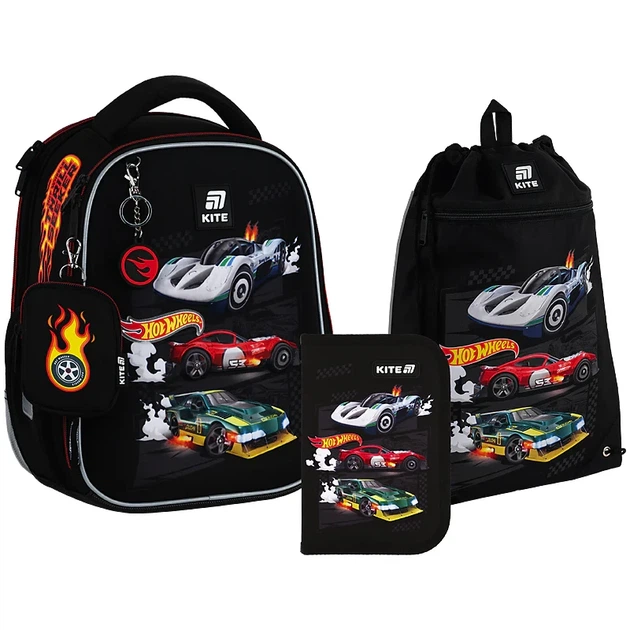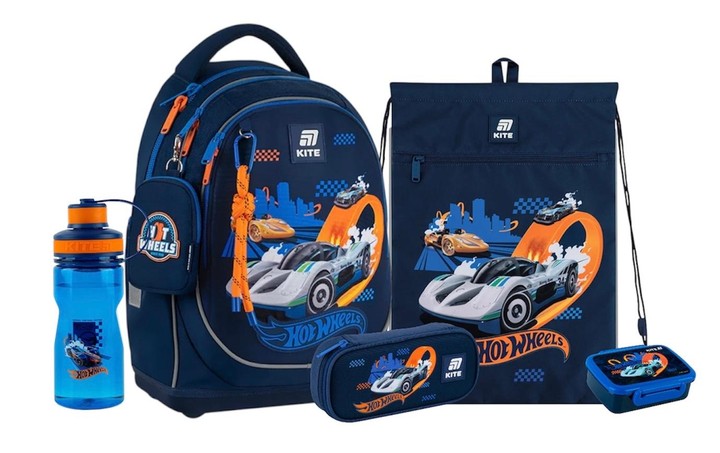 Шкільний набір Kite Education Hot Wheels (рюкзак, пенал, сумка, ланчбокс, пляшка) 115-130 см