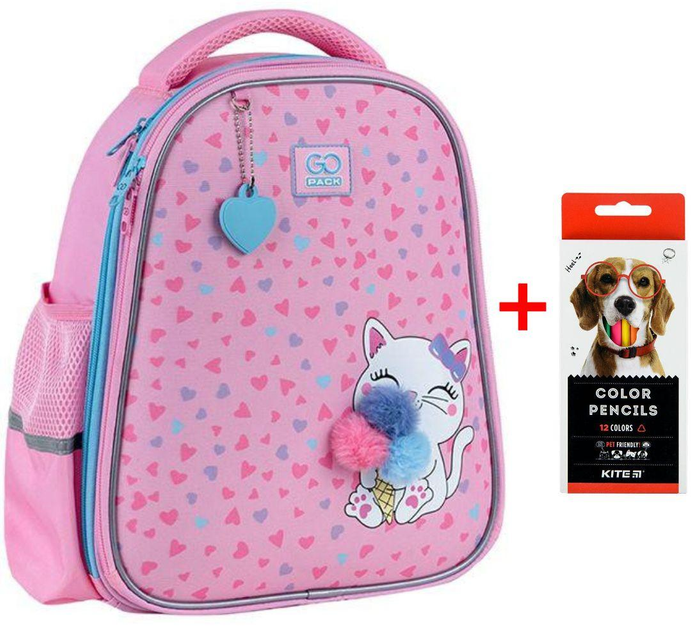 Рюкзак GoPack Education напівкаркасний GO25-165S-2 Fluffy Kitten + олівці Kite 12кол.