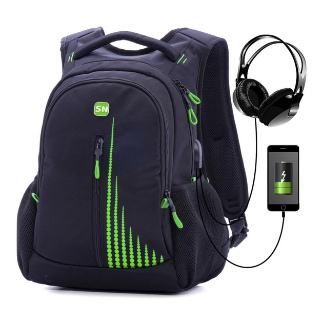 Рюкзак молодіжний SKYNAME 90-117 USB, чорний /90-117/