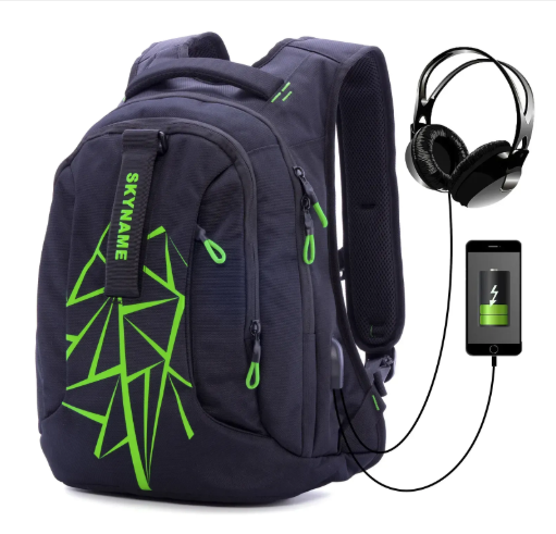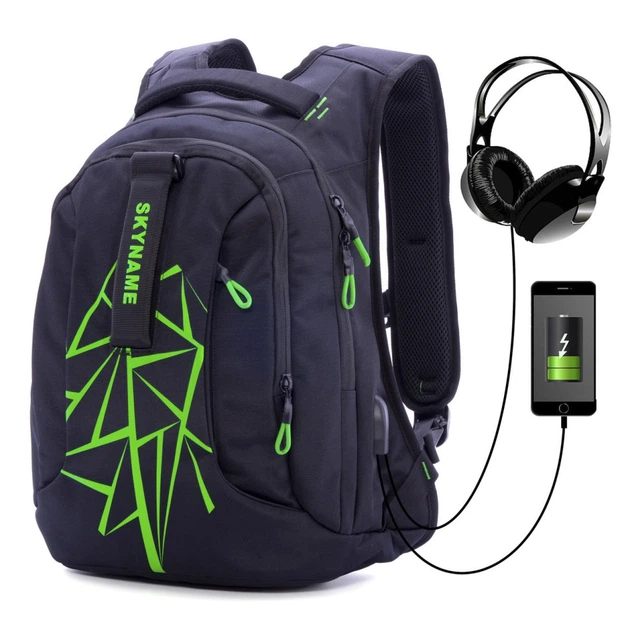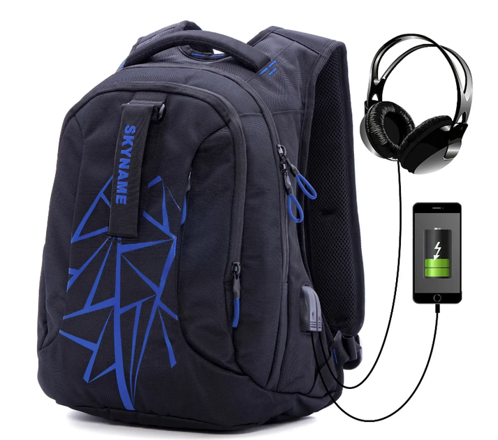 Рюкзак молодіжний SKYNAME 90-117 USB, чорний /90-117/