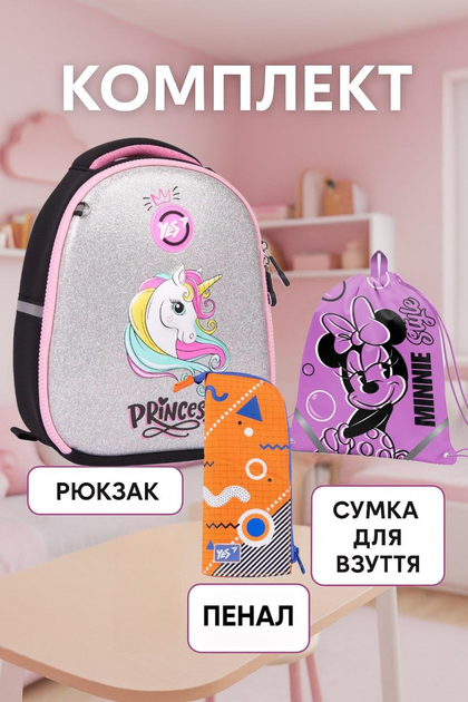 КОМПЛЕКТ Рюкзак дитячий для садочка Unicorn Princess K-33 Yes (550016)+Сумка для взуття YES SB-10 Minnie Mouse (533158)+Пена