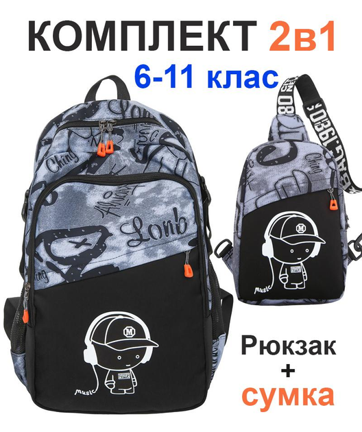 Комплект 2в1: рюкзак шкільний міський підлітковий для хлопчика підлітка 6-11 клас в школу і студентів + сумка через плече дл
