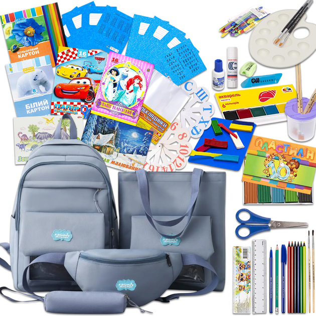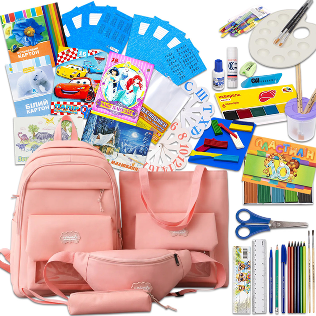 Набір 4 в 1 рюкзак шкільний (квадрат, коло, серце), сумка, клатч, пенал MFG-2-616