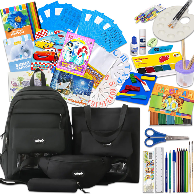 Набір 4 в 1: рюкзак, сумка-шопер, поясна сумка та пенал колір чорний COLOR-IT ЦБ-00281059