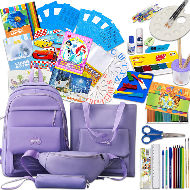 Шкільний набір канцтоварів з рюкзаком Koh-i-Noor 4в1 «Економ Люкс» Фіолетовий