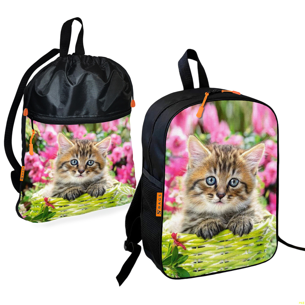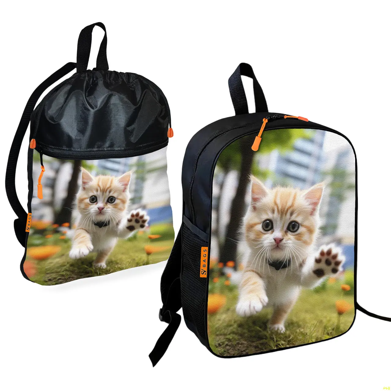 Шкільний рюкзак дитячий з кошеням + Сумка для взуття спортивної форми рюкзак-мішок для хлопчика (01699)