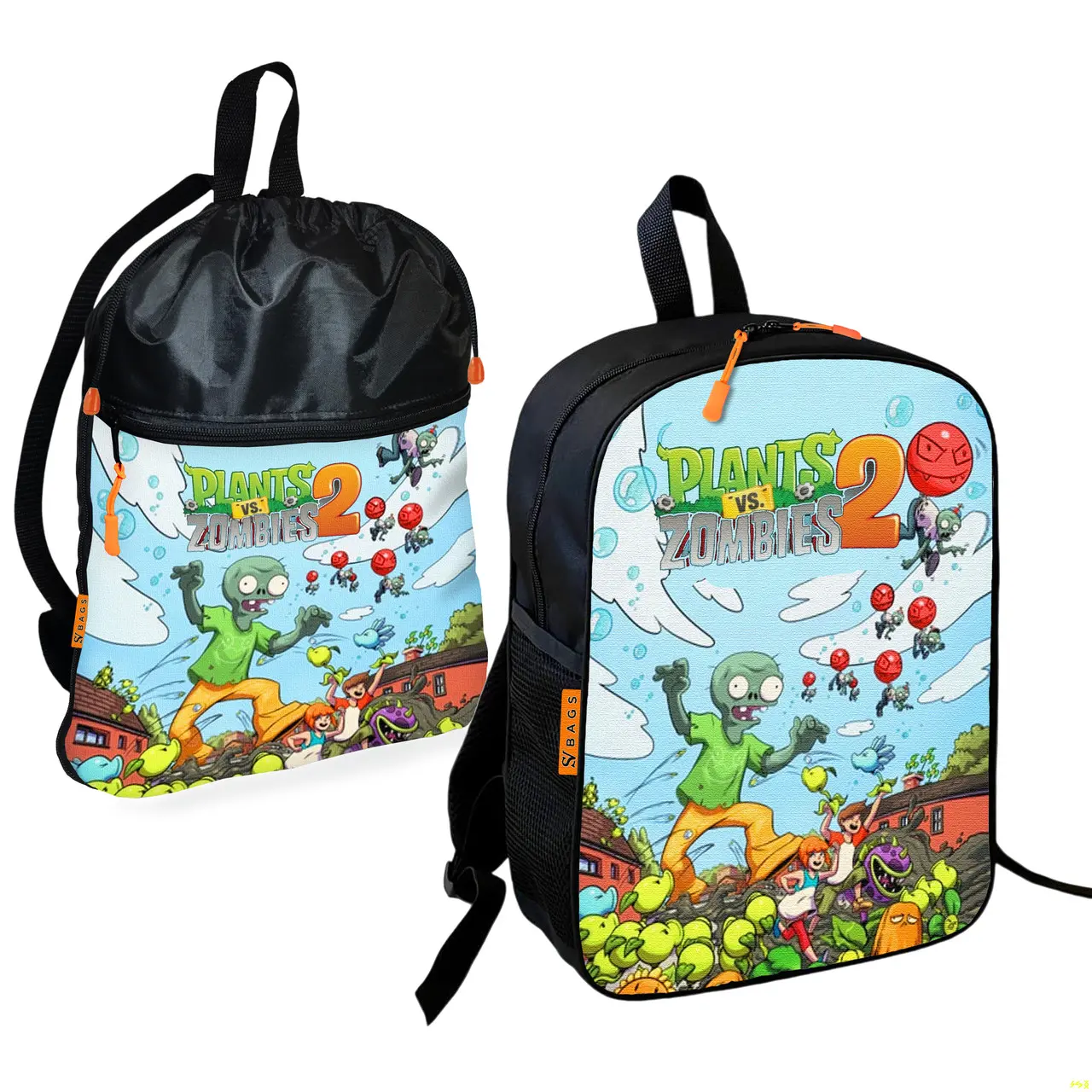 Шкільний рюкзак дитячий Рослини проти зомбі + Сумка для взуття спортивної форми рюкзак-мішок хлопчику (01812)