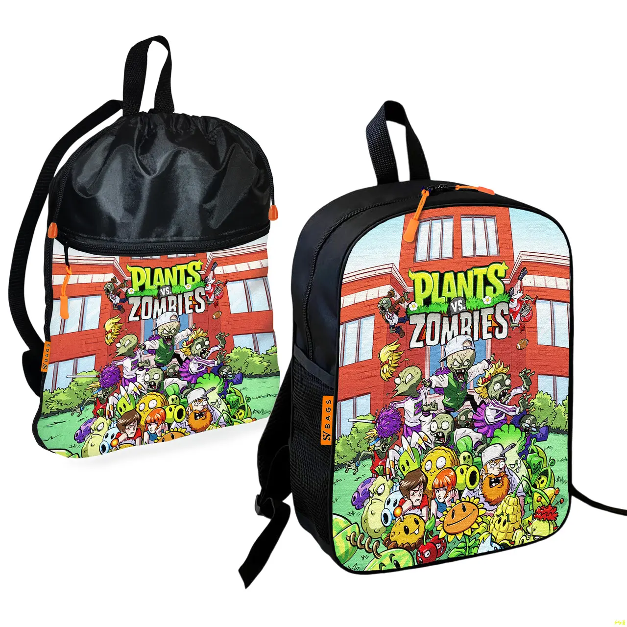 Шкільний рюкзак дитячий Рослини проти зомбі + Сумка для взуття спортивної форми рюкзак-мішок хлопчику (01814)