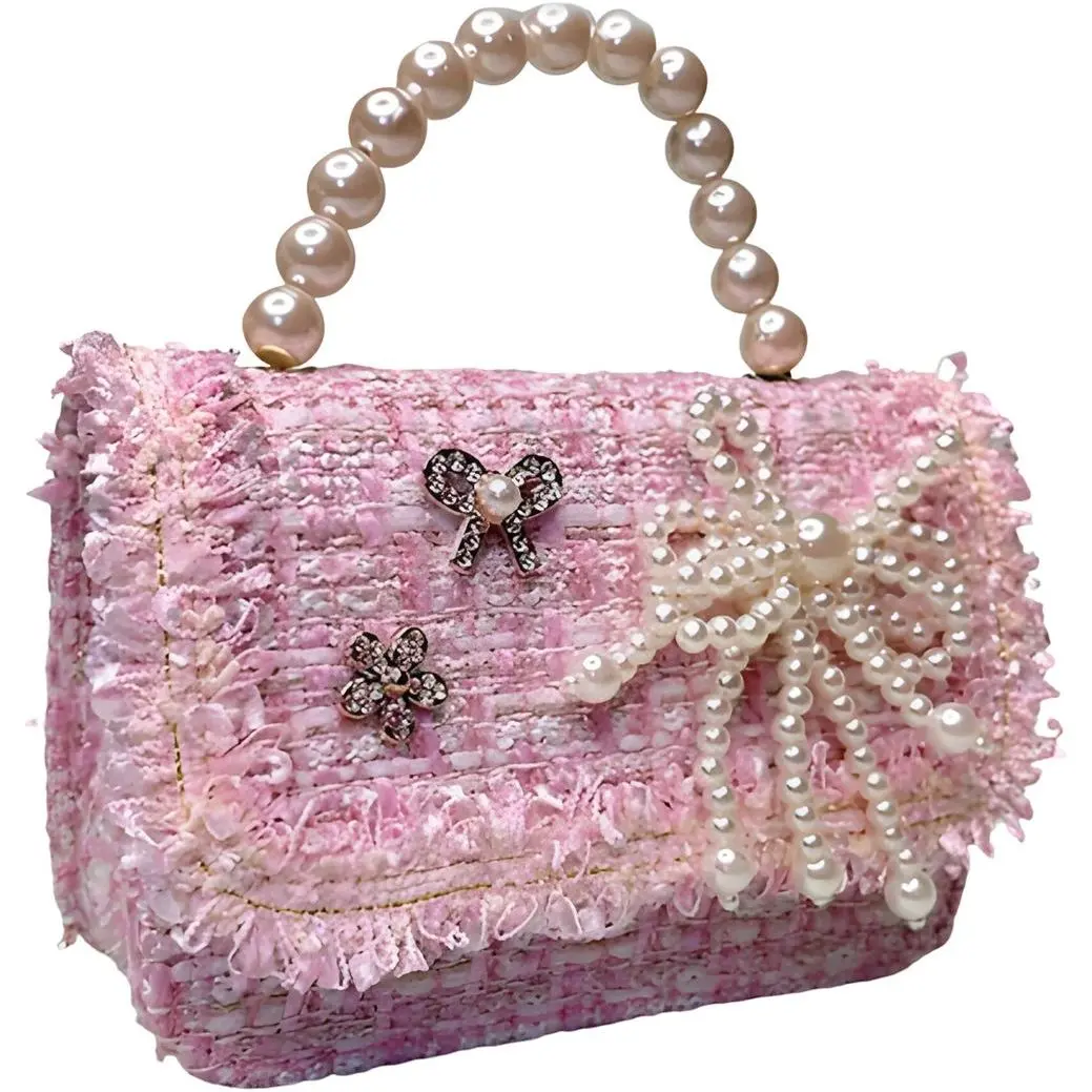 Дитяча сумка з бісером у стилі шанель рожева (24-557)