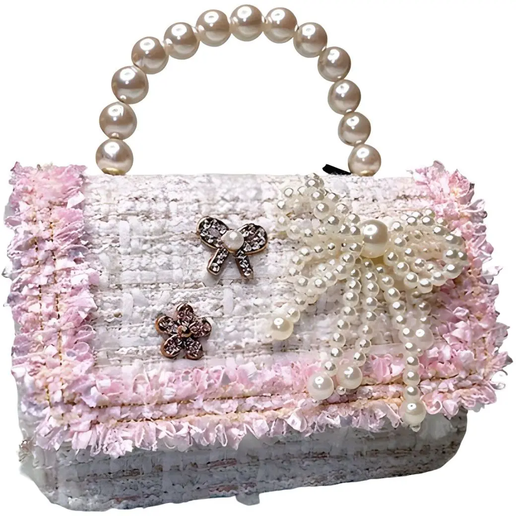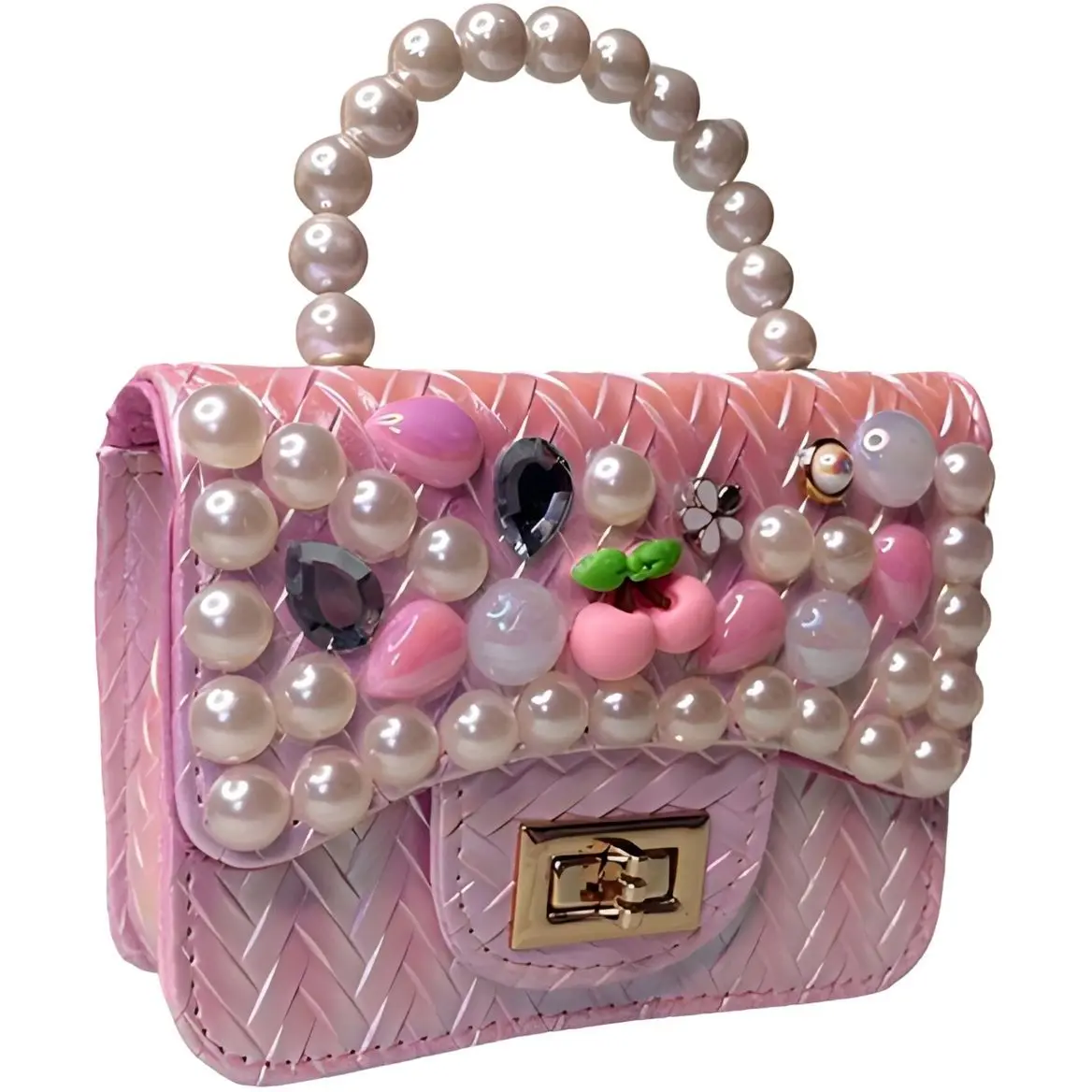 Дитяча сумка перламутрова з бісером рожева (24-556)