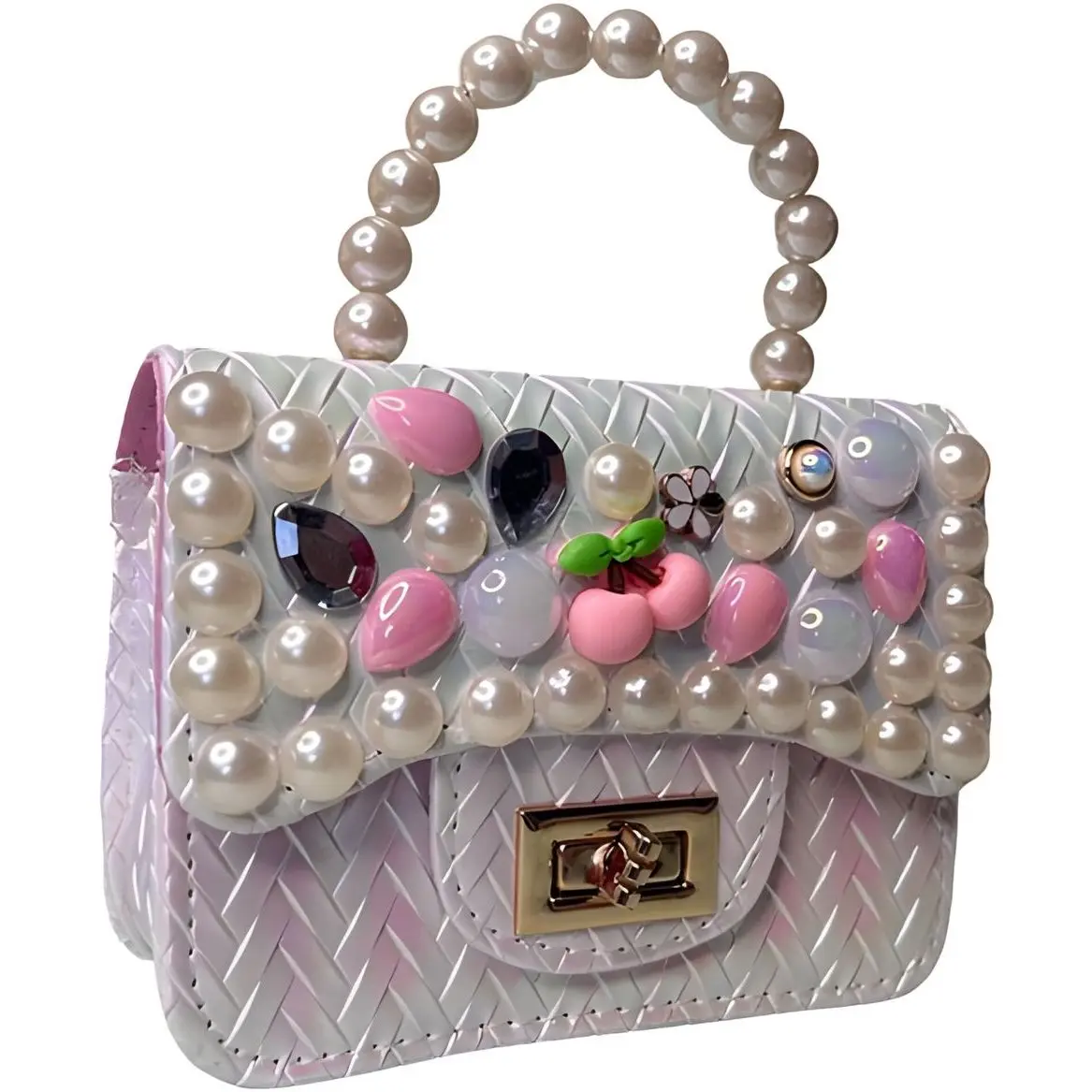 Дитяча сумка перламутрова з бісером біла (24-556)