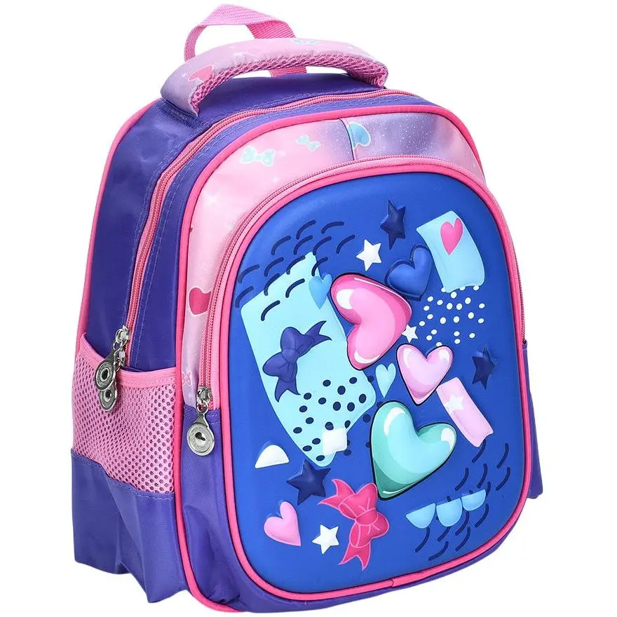 Дитячий рюкзак JD2421 з двома відділеннями та зовнішніми кишенями, синій з рожевим