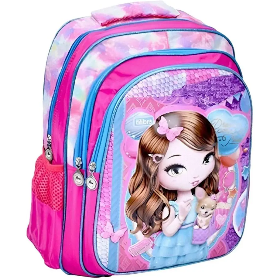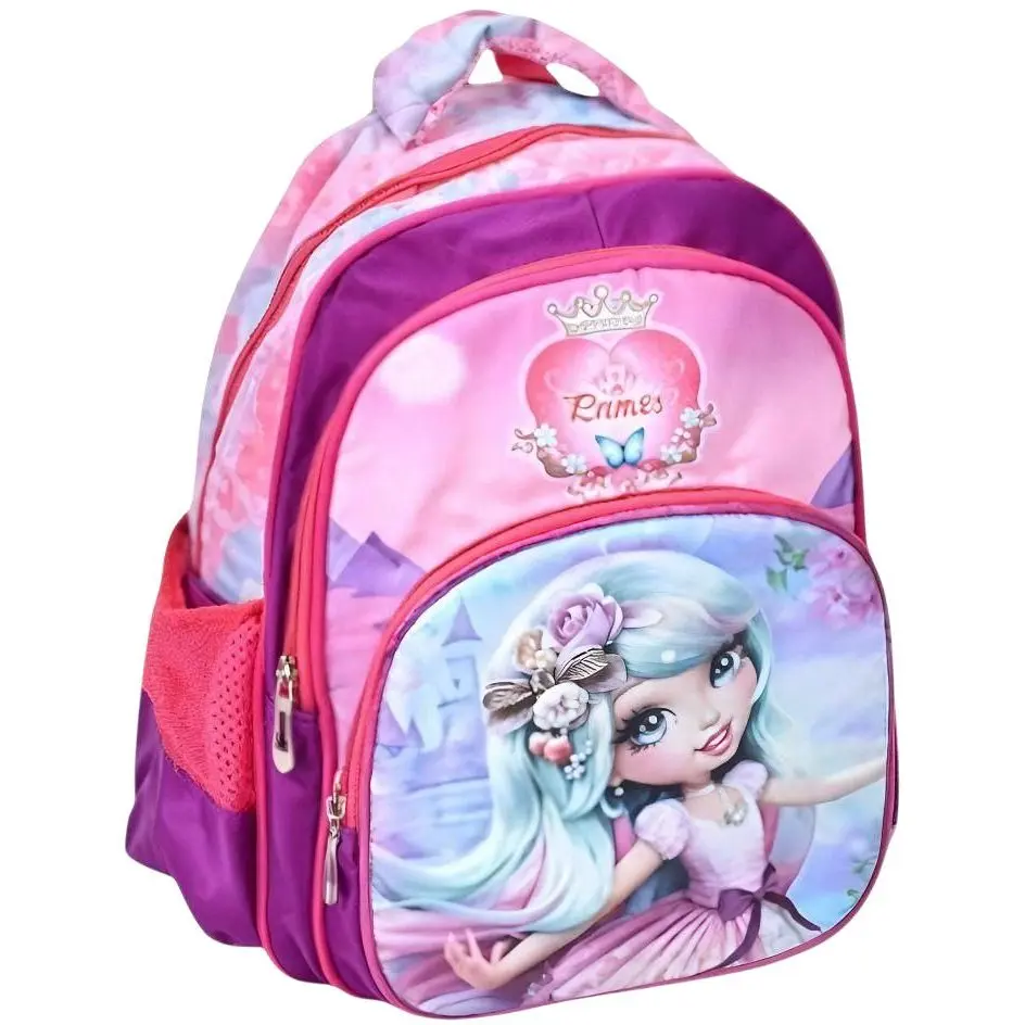 Дитячий рюкзак FG240502003A з двома відділеннями та зовнішньою кишенею, рожевий з принтом дівчинки