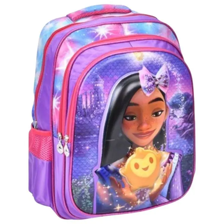 Дитячий рюкзак FG240502004A з трьома відділеннями та боковими кишенями, фіолетовий з принтом, розмір 39×28×14 см