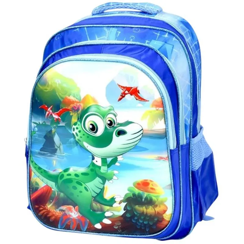 Дитячий рюкзак FG240502003A з двома відділеннями та зовнішньою кишенею, синій з принтом динозавру