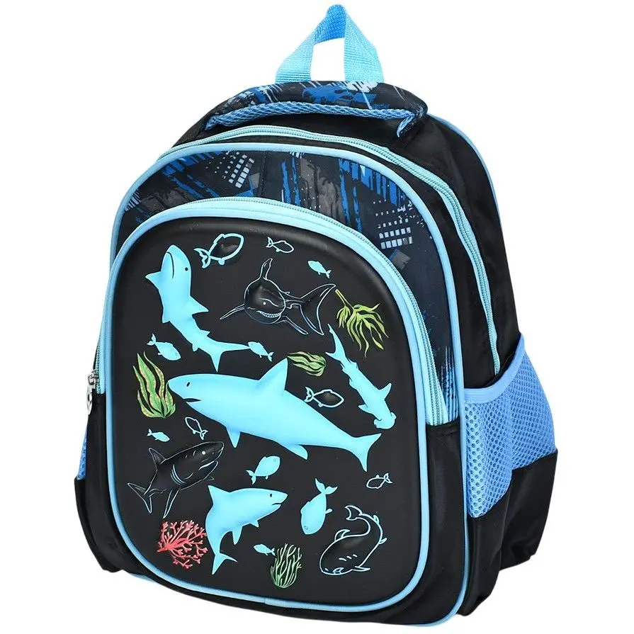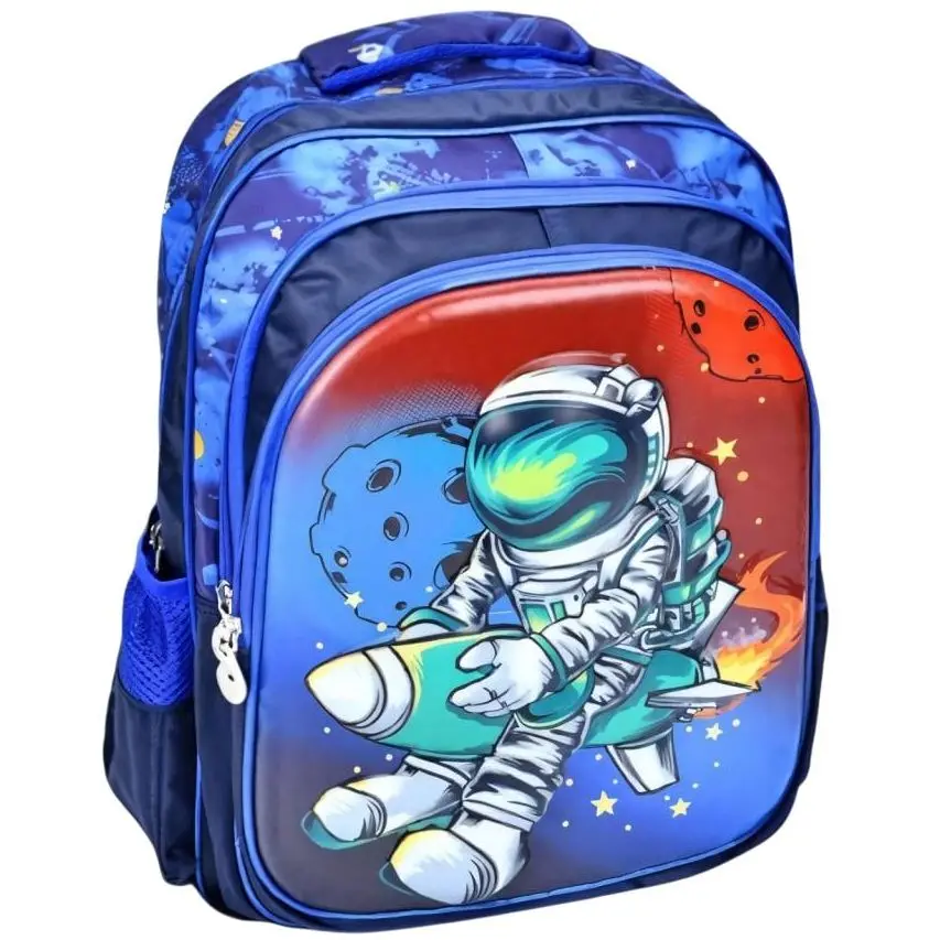 Дитячий рюкзак FG240502004A з трьома відділеннями та боковими кишенями, синій з принтом, розмір 39×28×14 см