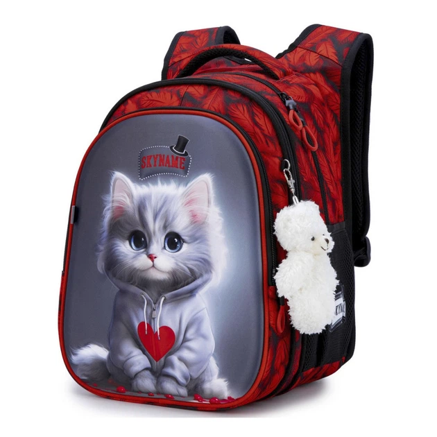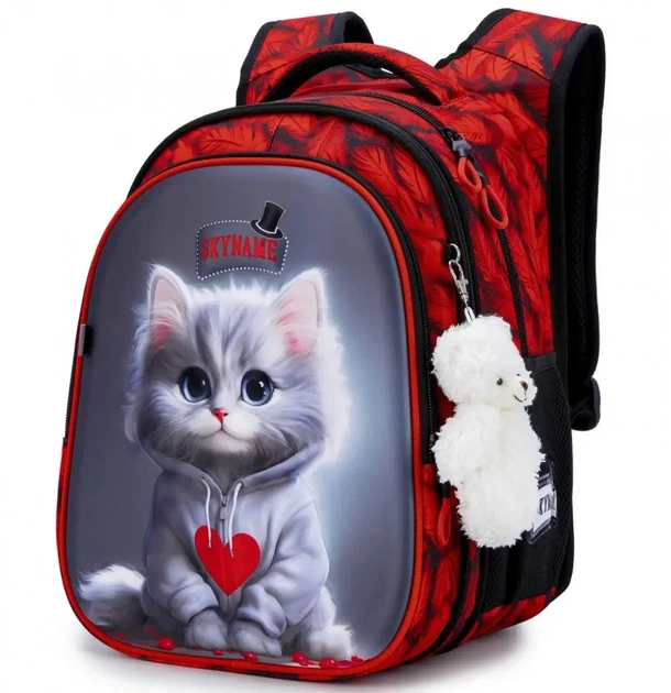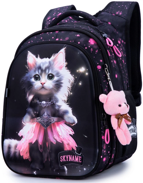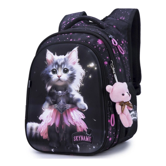 Рюкзак ранець портфель шкільний ортопедичний для дівчинки в 1-4 клас на три відділи Котик SkyName R1-055