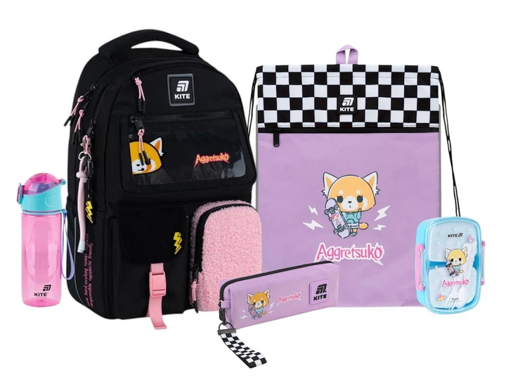Шкільний набір Kite teens Aggretsuko (рюкзак, пенал, сумка, ланчбокс, пляшка)