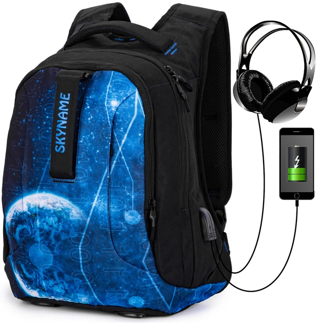 Рюкзак Sky Name молодіжний для хлопчика, чорний Winner One/SkyName