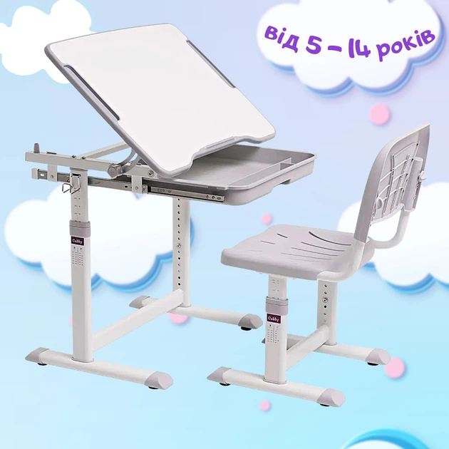 Комплект зростаюча шкільна парта та стілець від 5 - 14 років Fundesk Cubby Sorpresa Grey Сірий для дому, дитяча парта + стіл