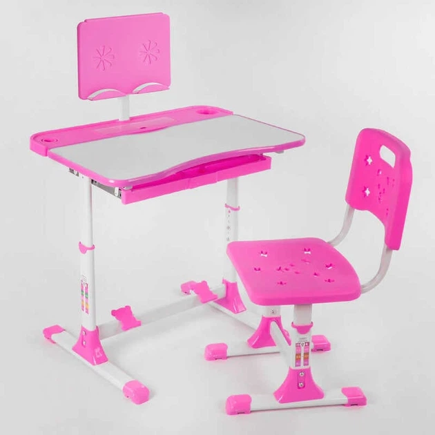 Дитяча парта зі стільчиком P 1140, рожева, регульована висота, нахил стільниці