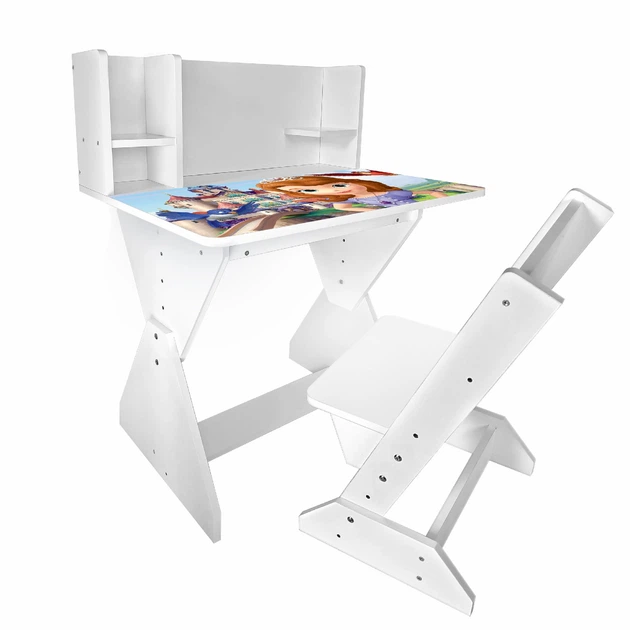 Дитяча парта зі стільцем зі збільшеною стільницею Українські янголята П03, з регулюванням висоти, білий колір, малюнок Софія