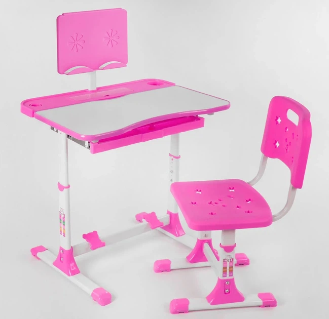 Парта зі стільчиком, регульована висота і кут нахилу стільниці, метал, пластик, 71х49 см. Pink (94156)