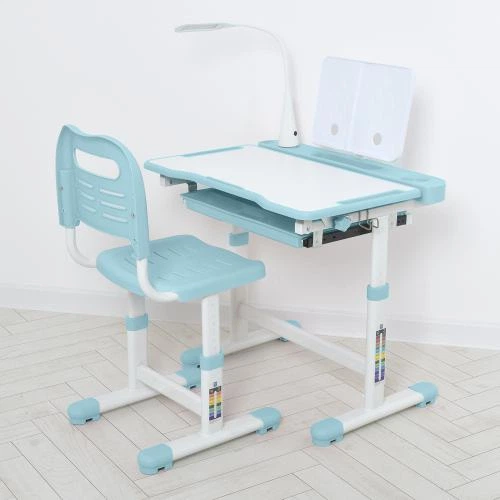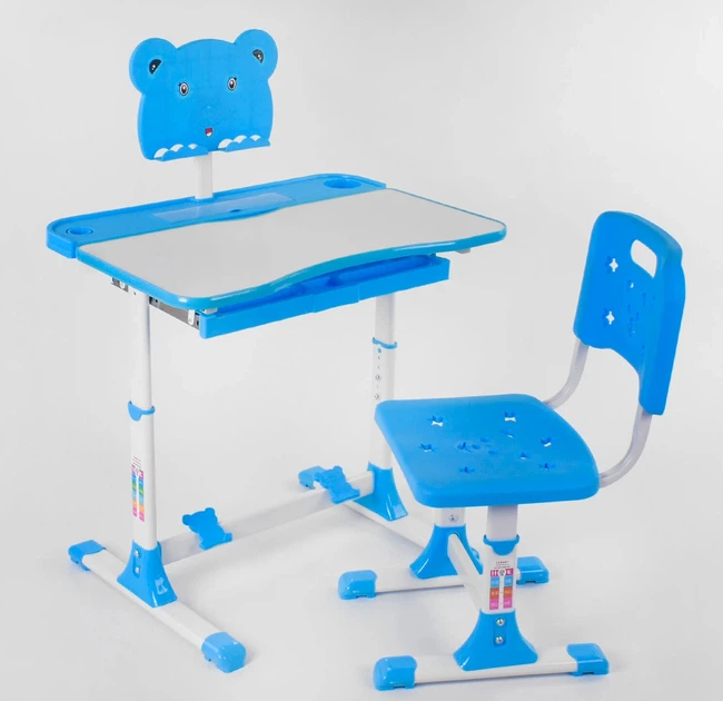 Парта зі стільчиком, регульована висота і кут нахилу стільниці, метал, пластик, 71х49 см. Blue (94157)