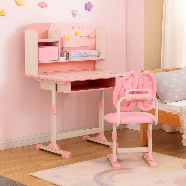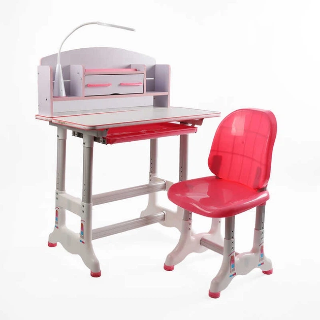 Парта дитяча зі стільчиком bl-18806 (1) колір рожевий, з полицями, регульована висота та нахил , з лампою, в коробці