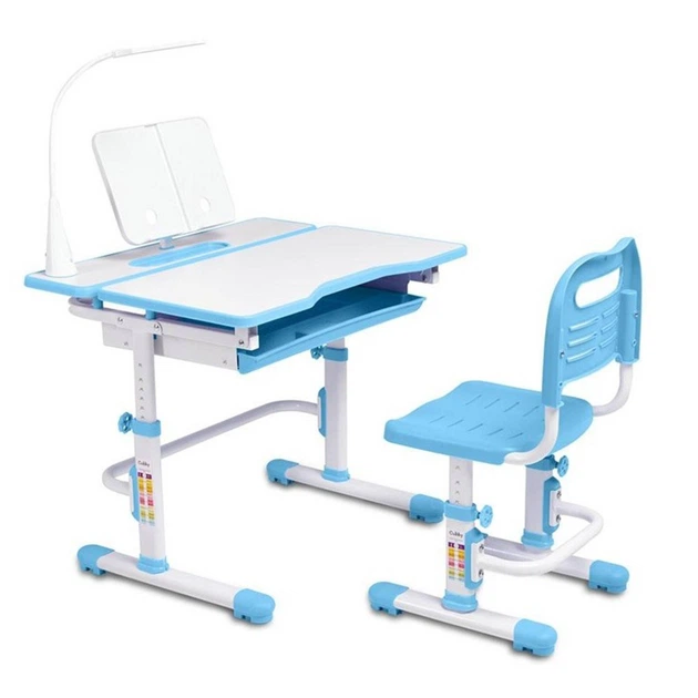 Парта дитяча зі стільчиком bl-14194 (1) колір синій, з полицями, регульована висота та нахил , з лампою, в коробці