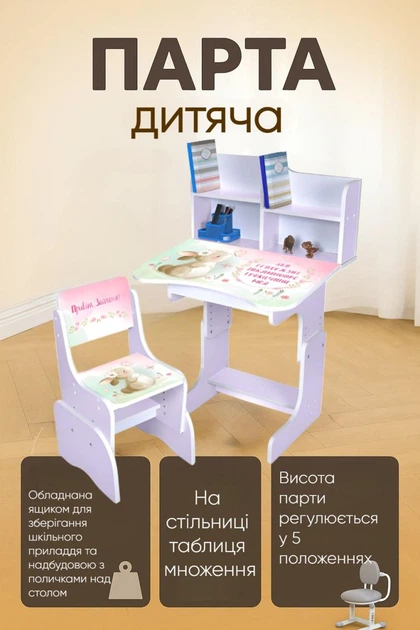 Дитяча парта зі стільчиком і надбудовою Bambi N 2071-15-6, регульована висота, кольорова