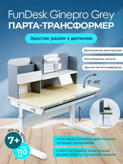 Парта-трансформер для підлітка Fundesk Fiore Grey