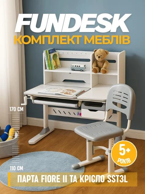 Комплект парта та стылець Fundesk Fiore II Grey і FunDesk SST3L Grey