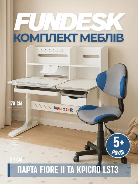 Комплект для підлітка парта Fundesk Fiore II Grey + стілець для школяра FunDesk LST3 Blue-Grey